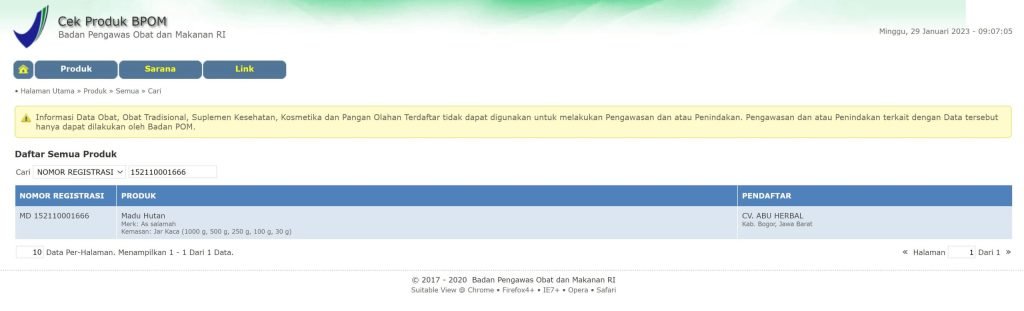 Madu Hutan Premium As Salamah Sudah BPOM Dengan No Registrasi 152110001666