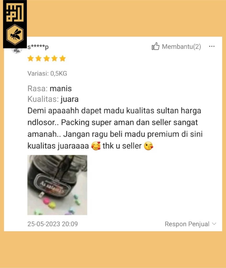 Madu Hutan Premium As Salamah Garansi uang kembali jika produk yang diterima tidak sesuai dengan pesanan.